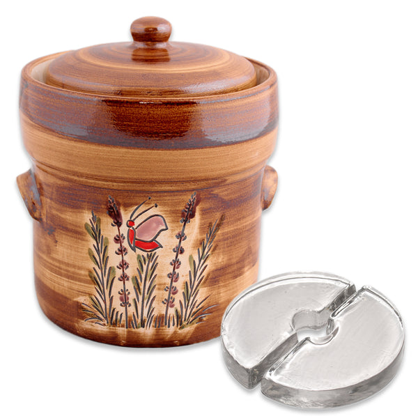 - 2.5 or 5 Liter Glazed Ceramic Fermenting Crock