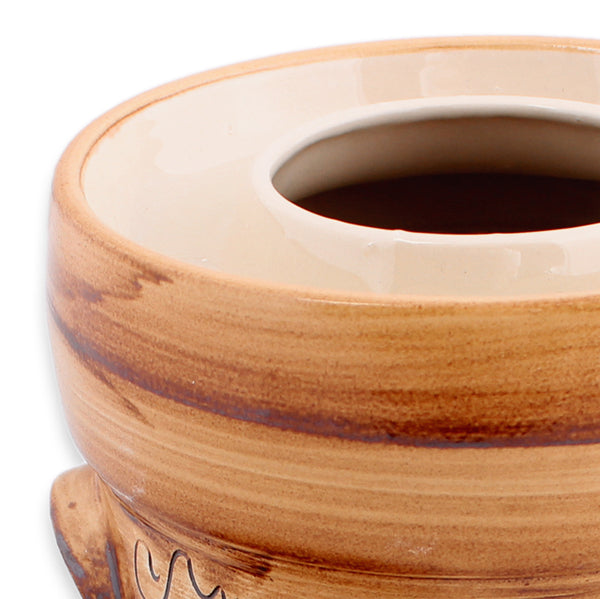 This crock is the perfect balance of an attractive display piece and a functional glazed ceramic fermenting crock. Each piece is hand made by a local artisan in a small workshop in Poland. The hand applied glaze comes in cream color with a light brown overlay on the outside. The interior has a smooth glazed finish, while the exterior features handmade decorative designs on the surface. The exterior glaze is thinner with a matte finish. This is a Stone Creek Trading exclusive item, we promise you won't find it anywhere else.