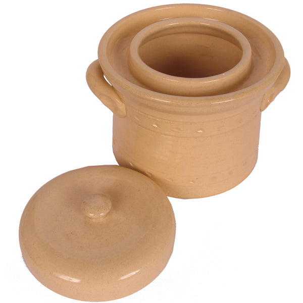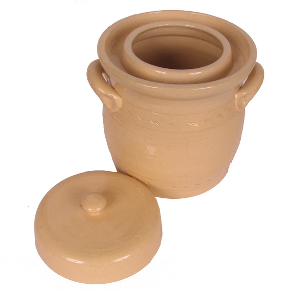 - 2 Liter (.5 gal) or 3 Liter (.8 gal) Cream Glazed Ceramic Fermenting Crock