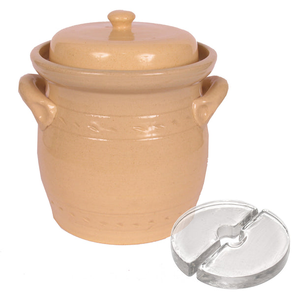 - 5 Liter (1.3 gal) Stoneware Fermenting Crock - Includes matching 6.5" Luna Glass Crock...